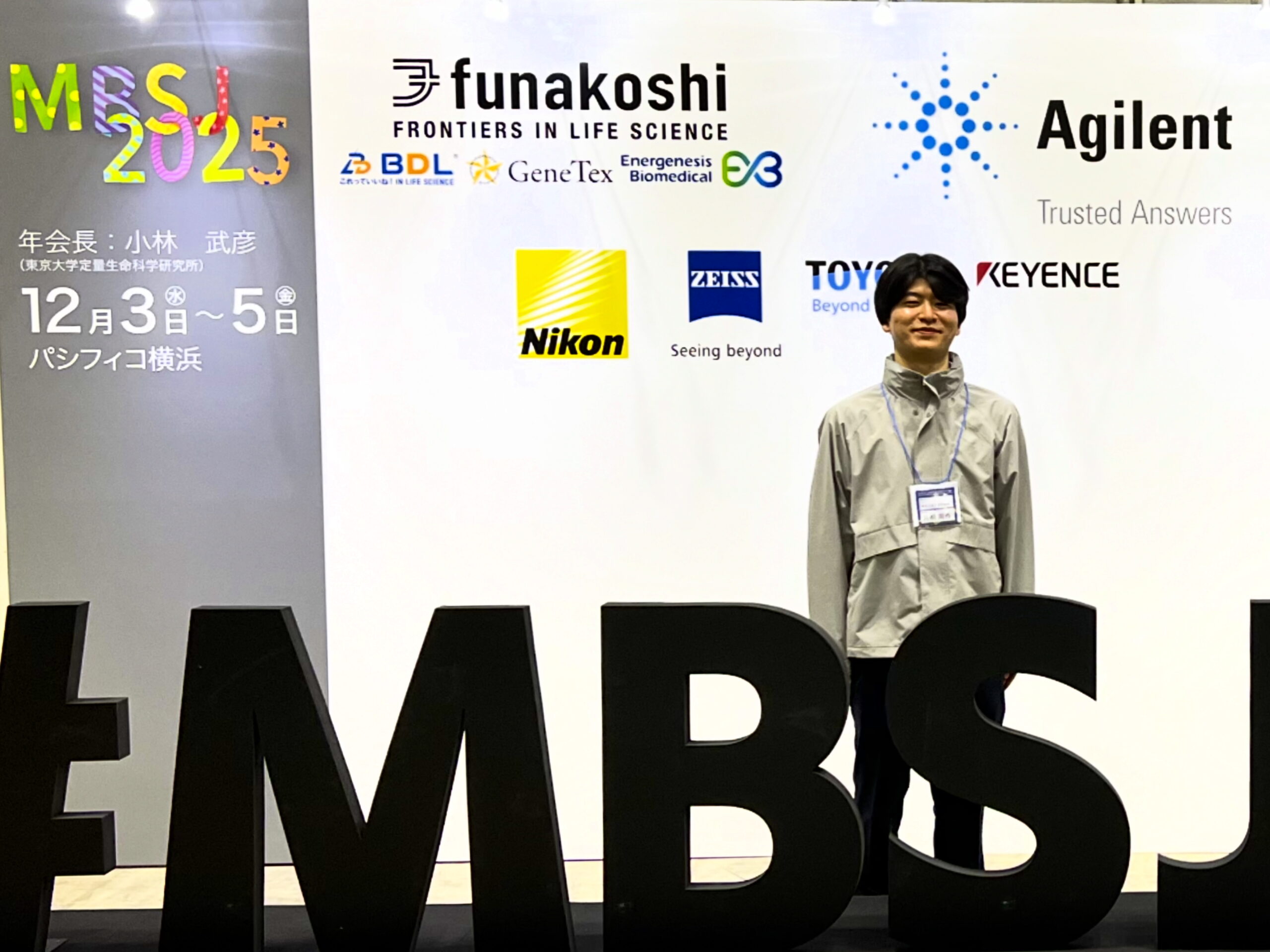 - 修士課程2年の片桐周作さんが、2025年12月4日にパシフィコ横浜で行われた第48回日本分子生物学会年会において「ヒト皮膚表皮顆粒層特異的プロモーターの探索」と題してポスター発表を行いました。